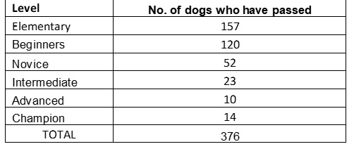 A total of 127 handlers have taken part, of which 45.6% are KUSA members and 54.3% are non-KUSA members. Most handlers have entered one or two dogs, but we have one who has entered 7 dogs, 1 x 6 dogs, and 2 x 5 dogs.